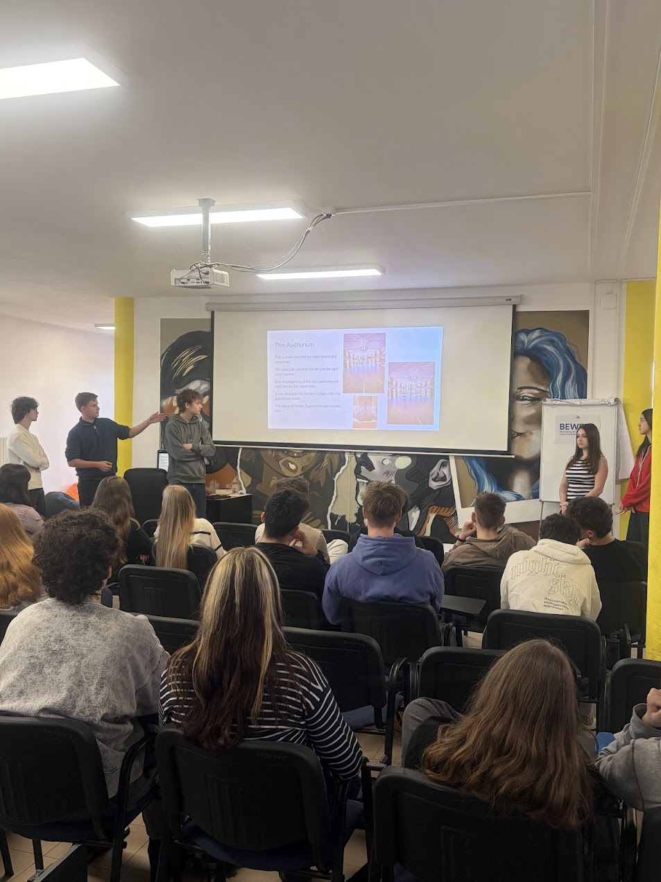 První den proběhly prezentace jednotlivých zemí a škol. Studenti představili svou zemi, město i školní prostředí. Ve stejný den jsme také zahraniční hosty z Maďarska a Slovenska provedli městem Ivančice. Navštívili jsme Muzeum Alfonse Muchy, kde jsme zhlédli dokument o životě malíře Alfonse Muchy, a podívali jsme se také do rodného domu herce Vladimíra Menšíka.
